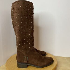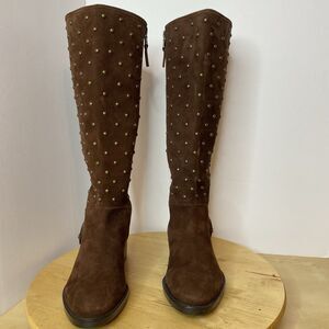 VTG LRL Ralph Lauren Chocolate Brown Suede Womens Boots Sz 6B Buckle flaw in interior lining