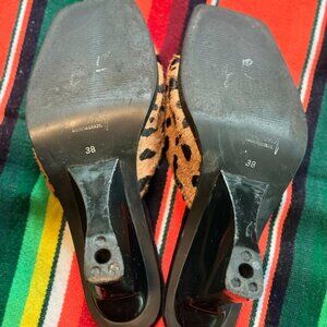 VTG LUICHINY CHEETAH PRINT HEELED PUMPS ~ OPEN TOE, 3" HEEL, MADE IN BRAZIL