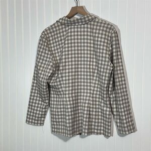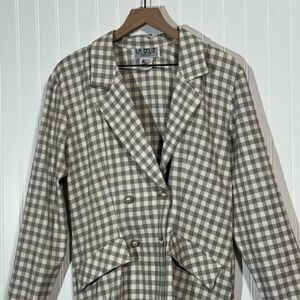 vintage La Belle blazer, gingham check jacket, plaid double breasted blazer, USA made women’s coat, size 11, preppy style, cottagecore outfit, 1980s fashion, 1990s clothing, academia aesthetic, light brown gray checkered