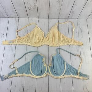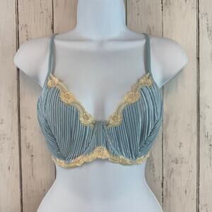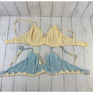 VTG La Perla Blue & Cream Plissé & Lace Underwire Bras Lot of 2 Size 4 38 C/D