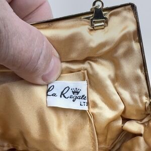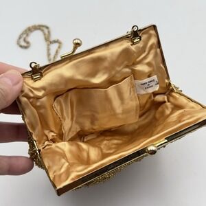 VTG La Regale Women's Evening Shoulder Purse Gold Beaded Clam Shell Gold Chain