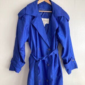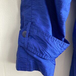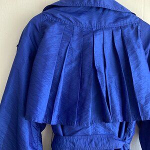 VTG La Vogue Blue Trench Coat Rain Coat Midi Accordion Pleated Cape Back Sz 10