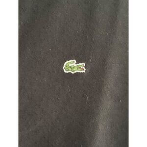 VTG Lacoste Crocodile Polo Top Black SS Collar 2 Button Front Neck Woman 40