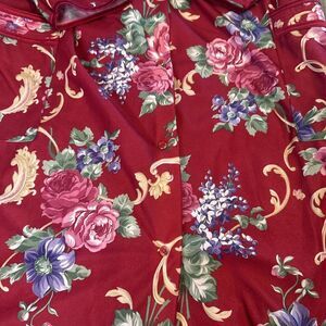 VTG Lady Manhattan CRANBERRY Floral Long Sleeve Snap Down Robe Sz Large