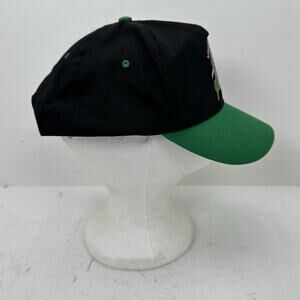 The product is a vintage Lake Charles Ice Pirates WPHL Hockey adjustable snapback hat cap, perfect for men who appreciate nostalgic Y2K style. The black color and snapback style give it a classic look, while the adjustable feature ensures a comfortable fit for any wearer. Ideal for fans of hockey and the 90s, this hat is a unique accessory that pays homage to a bygone era of sports.