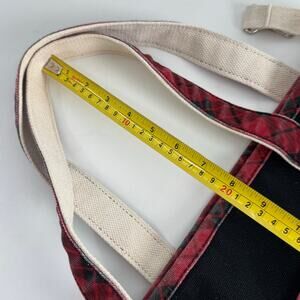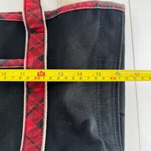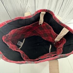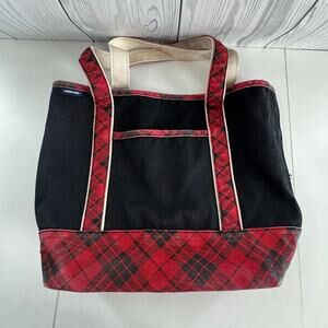 Lands End CANVAS TOTE BAG Red Black Plaid LARGE Multi Pocket Zipper