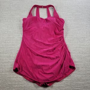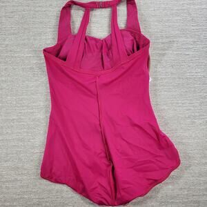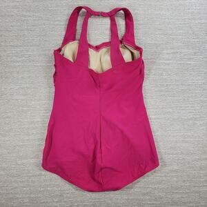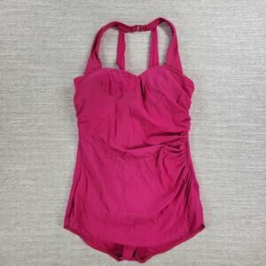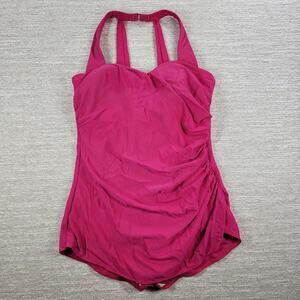 VTG Lands End One Piece Womens 14 Pink Halter Ruched Padded Beach Swimwear