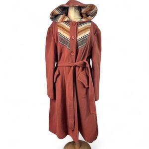 VTG Lane Bryant 70s Boho Southwestern Wool Blend Coat 1X Rust Folk Artsy Retro