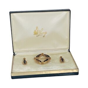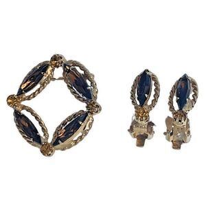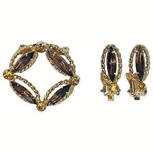 VTG Lang Icy Smokey Topaz Gold Plated Jewelry Set Brooch Clip On Earrings