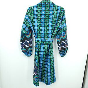 VTG Lanvin Spread Collar Patterned Self-Belt Shirt Dress M/L Blue/Green Print