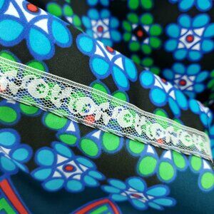 VTG Lanvin Spread Collar Patterned Self-Belt Shirt Dress M/L Blue/Green Print, very good condition with light wear, no apparent flaws. Tag size 12; fits closer to a modern 8/M/L. See measurements below to ensure a good fit.