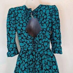 Description: VTG Lanz Petite Whimsigoth Dark Academia Witchy Romantic Hyper Feminine Dress 2, made in the USA, two side slip pockets, concealed back zipper, cut out back detail, puff sleeves, ribbon and button closure at the neck