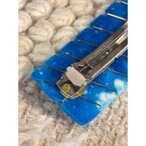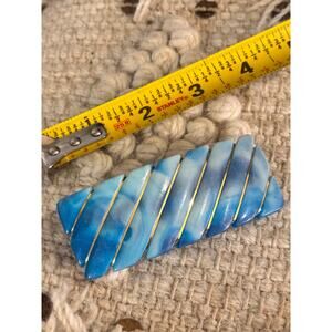VTG Large 1980s Wire Wrapped Hair Clip 3.5" turquoise Blue Resin Barrette KOREA