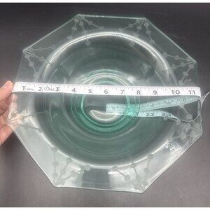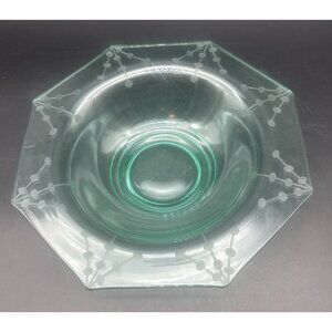 VTG Large Etched Uranium Glass Depression Footed Fruit Serving Bowl 11.5” Glows