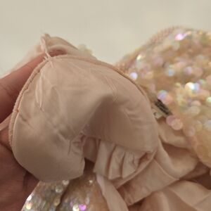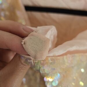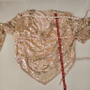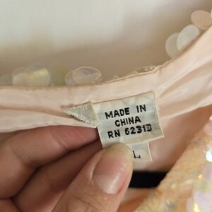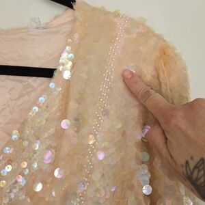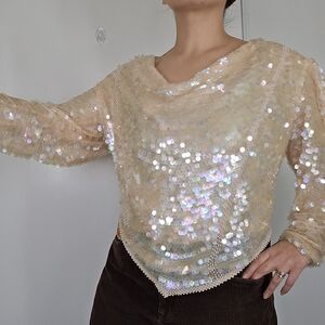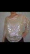 VTG Large Pink Ivory Full Sequin Glam Silk Evening Blouse 80s Beaded Iridescent