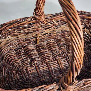 VTG Large Woven Rattan Twig Stick Gathering Basket with Handle Two Toned Brown