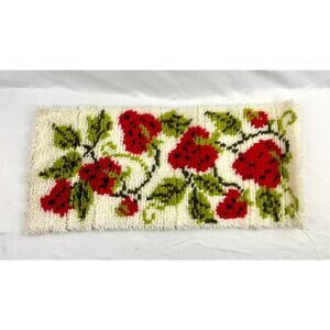 VTG Latch Hook Rug Wall Hanging Artwork Strawberries Fruit 12"x 27" Handmade