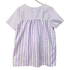 Step back into classic comfort with this Vintage Lati Fashion Women’s bed shirt in size Large. This charming piece features a lightweight seersucker fabric with a timeless gingham check pattern, perfect for cool-weather lounging or retro-inspired style. Finished with pearl snap buttons, this robe-style housecoat offers easy wear, breathability, and a true vintage look.