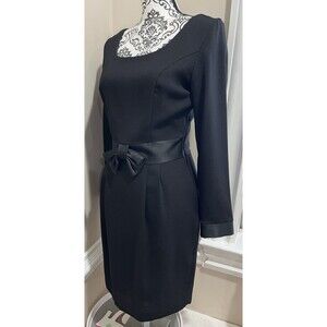 VTG Laura Ashley Black Dress Bow Front Satin Trim Audrey Hepburn 50s’ Sz 6