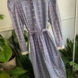 VTG Laura Ashley Blue Floral Print Button Down Dress Cottagecore Prairiecore