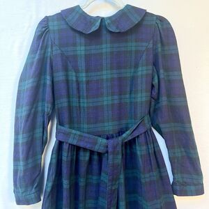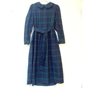 VTG Laura Ashley Check Plaid Wool Blend Midi Blue Green Dress US 10 Farmcore