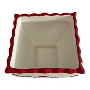 This vintage Laura Ashley for FTD ceramic planter brings a festive holiday touch with its holly and berry garland, red ribbon design, and gold bead trim. The scalloped rim and footed base add extra charm, making it ideal for Christmas floral arrangements, greenery, or as a decorative centerpiece.