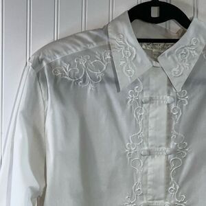 VTG Laura & Jayne Collar Button Down Blouse Women 14 White Prairie Victorian