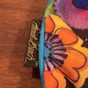 Add a pop of color to your outfit with this whimsical Laurel Burch crossbody bag, featuring her signature “Fantastic Felines” artwork. Brightly colored cats and floral accents stand out against a black background, trimmed in blue for a bold boho look. Perfect for everyday wear, festivals, or as a collectible piece of wearable art.