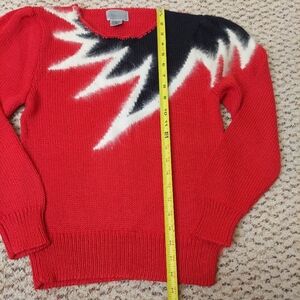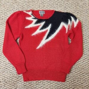 VTG Lauren Cole Knit Sweater Womens PS Red Black White Color Block Angora 80’s