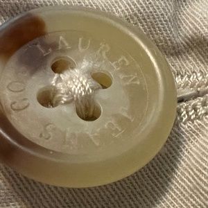 Vintage soft 100% cotton pants. Easy to wear. Please see photos for measurements. Three buttons with Lauren name/Logo. 4 pockets: 2 button pockets in back. Two front pockets, one with small key pocket.