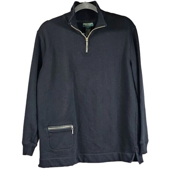 Lauren Ralph Lauren 100% Cotton Black 1/4 Zip Sweater/Sweatshirt Zip Pocket Womens Large