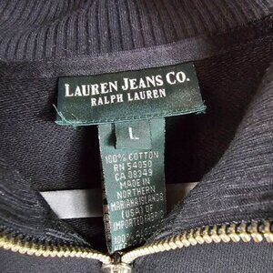 VTG Lauren Jeans Co. Womens Cotton Black 1/4 Zip Sweatshirt Sz L Zip Pocket