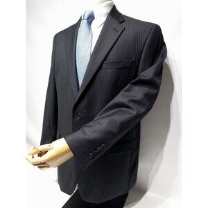 VTG Lauren Ralph Lauren 100% Wool Black Pinstriped Blazer Made in Canada Men 42R