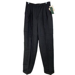 These vintage Lauren Ralph Lauren wool trousers feature a sophisticated pinstripe design with a high-rise, double-pleated front. Crafted in the USA, they offer a polished and classic fit for professional settings.