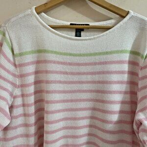 VTG Lauren Ralph Lauren Cotton Sweater Womens 3X Pink Striped Pullover Preppy