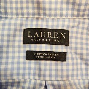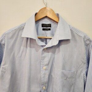 VTG Lauren Ralph Lauren Dress Shirt Mens Size 17 XL Blue Gingham Checks Stretch