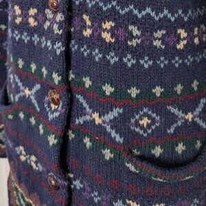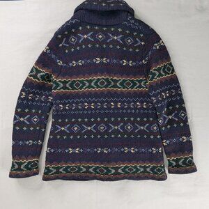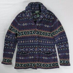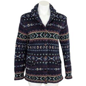 VTG Lauren Ralph Lauren Handknit Lambswool Button Up Southwestern Cardigan