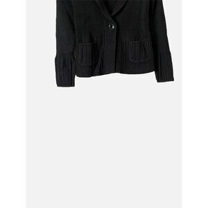 The VTG Lauren Ralph Lauren Women Black Sweater with pockets is a vintage piece with a solid black color and a tight-knit fabric. It features a collared neckline, pockets, raglan sleeves, and an open front design. This chunky sweater is perfect for casual, workwear, or travel occasions, with a regular fit and a touch of bohemian, classic, or preppy style. The sweater is machine washable and accented with a logo and buttons, making it a versatile and stylish addition to any wardrobe for the winter or fall seasons.