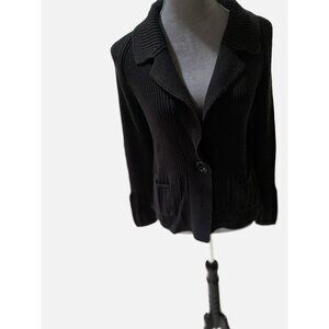 VTG Lauren Ralph Lauren Women Black Sweater RN# 54050 Chunky With Pockets SizeM.