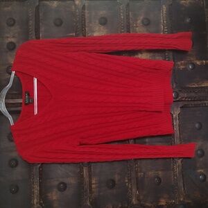 VTG Lauren Ralph Lauren Womens Cable Knit Sweater Size M Red V-Neck 90s Y2K
