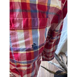 VTG Lauren Ralph Lauren Womens M Plaid Silk Button-Down Shirt LOGO School girl