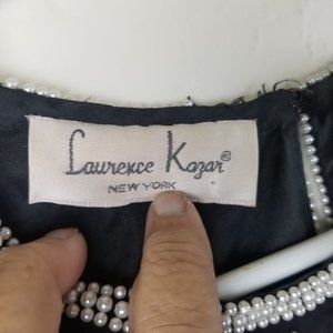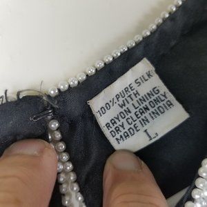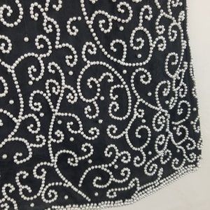 VTG Laurence Kazar Sz L Black Silk Pearl Beaded Evening Formal Top Blouse Womens