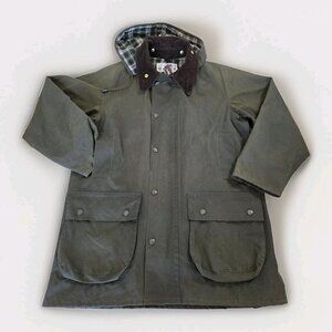 VTG Lavenir Wax Chore Coat Men 36 Military Green LS Lined Cotton Equestrian Hood