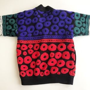 VTG Le Club Chunky Oversized Open Cardigan Sweater Bold Colorful Circles Stars M