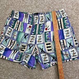 VTG Le Coq Sportif Purple and Green Patterned Men's Shorts