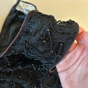Please note wear to some beads as shown. No fabric tag, but feels like silk lining. Please see photos for details and measurements.