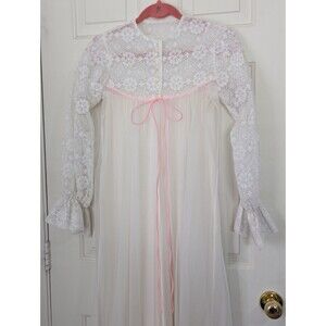 VTG Le Voys Night Gown Sheer Robe Peignoir Set Small Petite White Lace Wedding