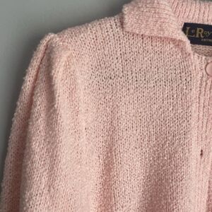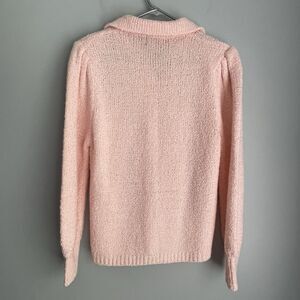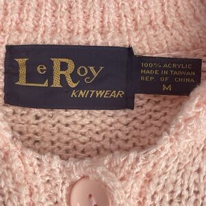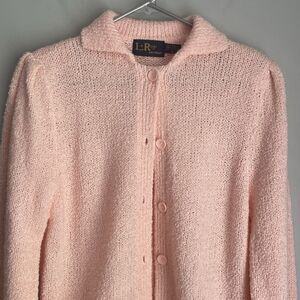 VTG LeRoy Knitwear Cardigan Peach Women's M Pleated Shoulders/Pads Grandmacore