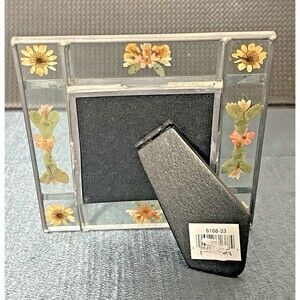 VTG Leaded Glass Picture Frame, Embedded Dried Pressed Flowers for 3.5x3.5 Photo