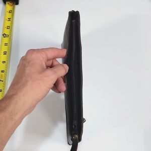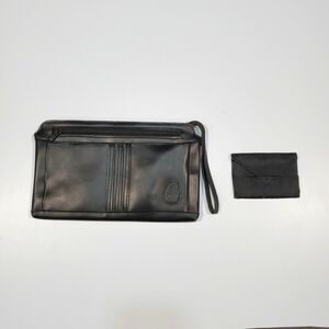 VTG Leather Black Clutch Purse Bag Wallet LaRue Sassy Wrist Strap Mirror Y2K 90s